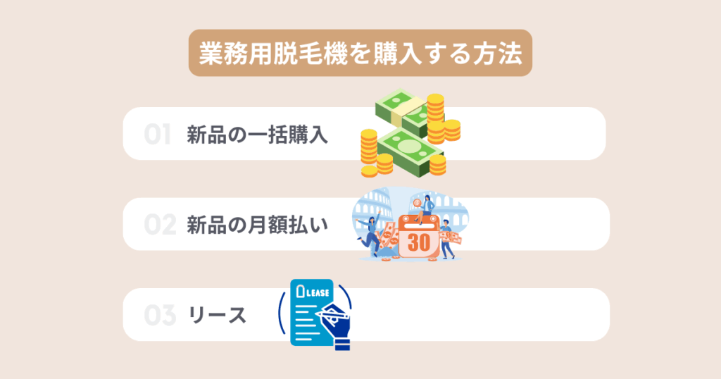 業務用脱毛機を購入する方法としては、以下の3つがおすすめです。