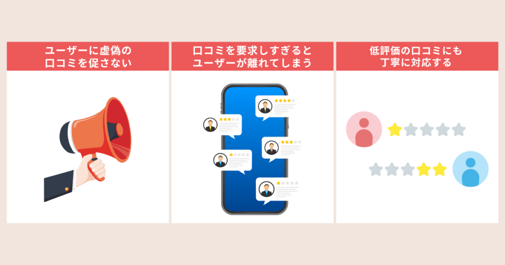 - 口コミを要求しすぎるとユーザーが離れてしまう可能性がある