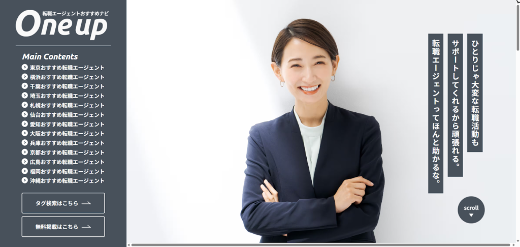 転職エージェントおすすめナビ Oneupは、全国の転職エージェントを地域別に探して比較できる専門Webメディアです。